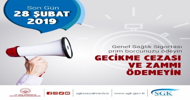 Ayrıca; Genel Sağlık Sigortası kapsamında olup 30 Nisan 2018 tarihi öncesi prim borçlarının da gecikme zammı/cezası veya geç ödeme zammı uygulanmaksızın Şubat ayı sonuna kadar ödenebileceğini belirtti.