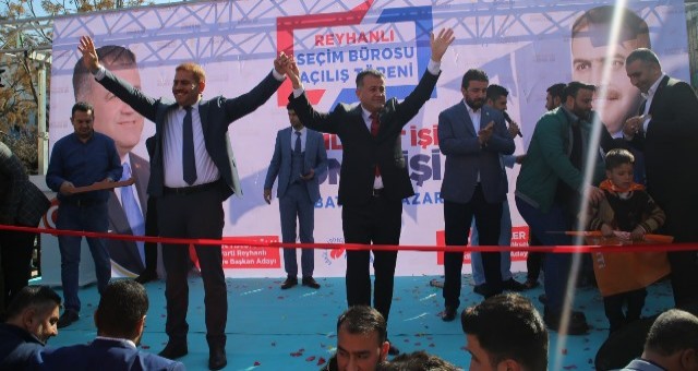 Ak Parti Reyhanlı Seçim Bürosu açılışına Ak Parti Belediye Başkan adayı Mehmet Hacıoğlu, Ak Parti Hatay Milletvekilleri Hüseyin Şanverdi, Hacı Bayram Türkoğlu, Hüseyin Yayman, Abdülkadir Özel, MHP Hatay Milletvekili Lütfi Kaşıkçı ve yoğun bir halk kitlesi katılım gösterdi.