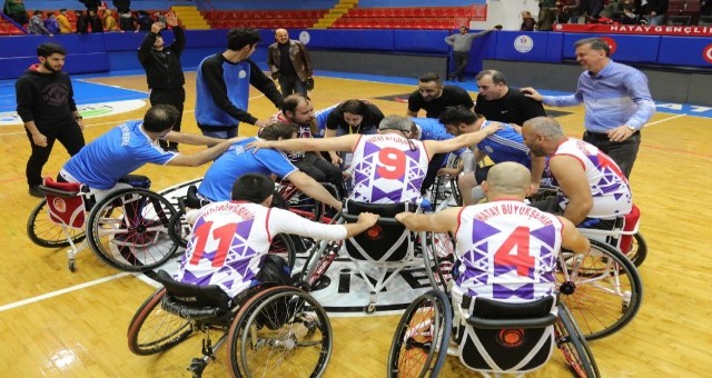 2 Mart Cumartesi günü Antakya Spor Salonu?nda Mersin Sanat Engelliler takımını mavi-beyazlılar, parkeden 77-58 galip ayrılmasını bildi. Maçın tamamında üstün olan taraf Hatay Büyükşehir Belediyespor oldu. Mavi-beyazlılarda İbrahim Gür attığı 28 sayıyla en skorer isim olurken Songül Çelik ve Kemal Atçı ürettikleri 16 sayıyla galibiyete katkı verdi.