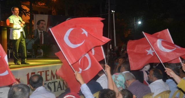 Cumhurbaşkanımız, Başkomutanımız Recep Tayyip Erdoğan?ın dik ve kararlı duruşuyla 15 Temmuz akşamında tüm halkımızı kentimizin meydanlarında ?Demokrasi Nöbetine? bekliyorum demesi ile başlayan süreçle, dünyaya örnek bir demokrasi mücadelesi verilen Ülkemizin tarihine kara bir leke ve devamında demokrasi şölenine dönüşen önemli bir tarihtir. Yapılan kanlı darbe girişimi yalnızca, ülkemizin siyasi otoritesine değil, bayrağımıza, ezanımıza ve bağımsızlığımıza hedef alınan, kendi silahımızla, uçağımızla, tankımızla, başta Amerika olmak üzere birçok ülkenin desteğiyle, bir işgal girişimidir.
