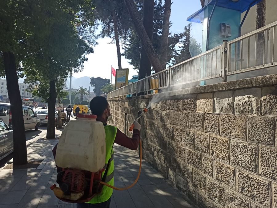 Resmi kurum ve kuruluşlar, kendi bünyesindeki hizmet binaları, ana cadde, parklar duraklar ve ibadethaneler gibi birçok noktada dezenfeksiyon çalışmalarına ara vermeden devam eden Büyükşehir ekipleri, hijyenden ödün vermeyerek mesai gözetmeksizin önlem almaya devam ediyor.